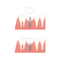 人口歯冠(補綴[ほてつ])を支台部(アパットメント)と人工歯根(フィクスチャー)を使って装着する