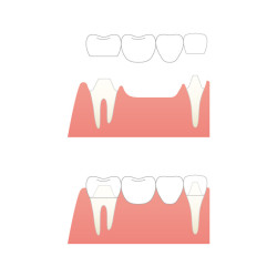 中央のボンティックを両端のクラウンで支えるため、両端は実際の歯を削って支台歯にする